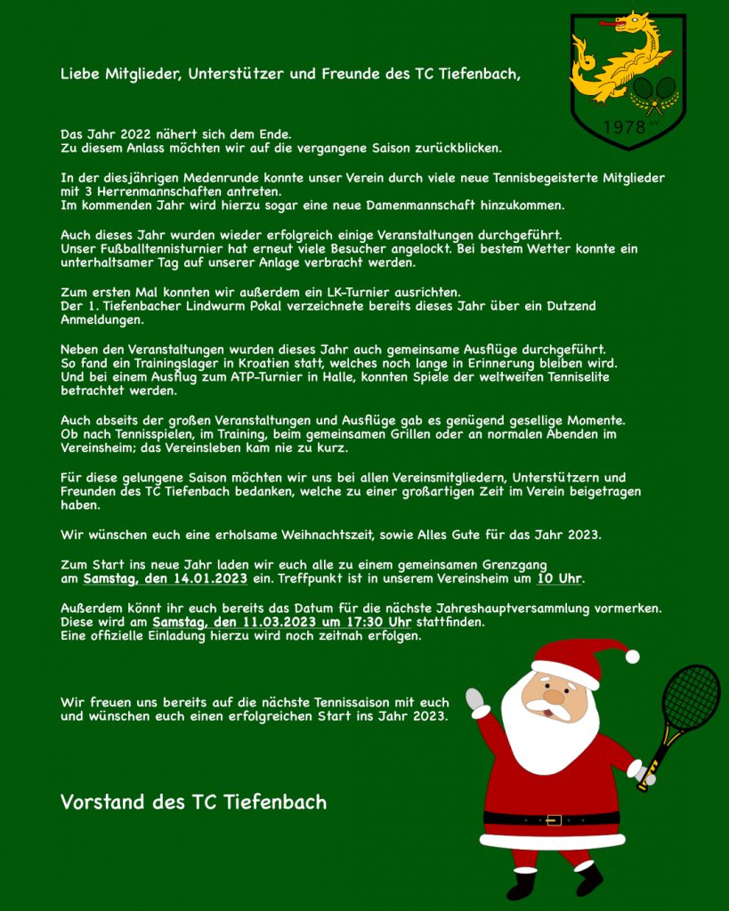 Der TC Tiefenbach wünscht Frohe Feiertage